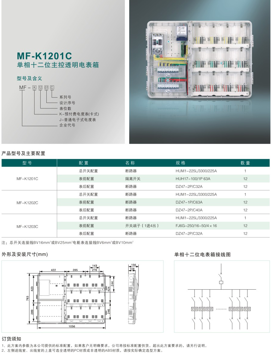 MF-K1201C 單相十二位主控透明電表箱