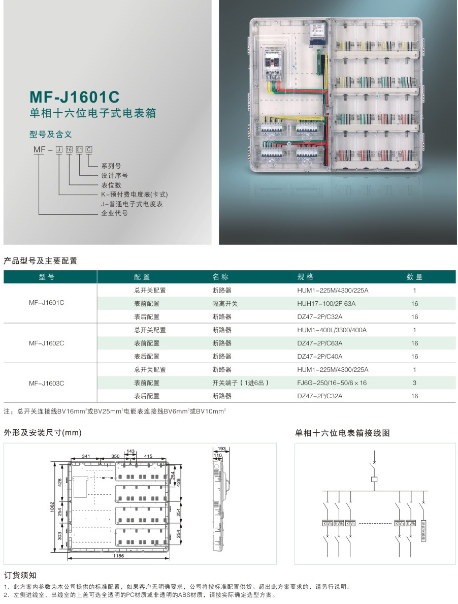 MF-J1601C 單相十六位電子式電表箱