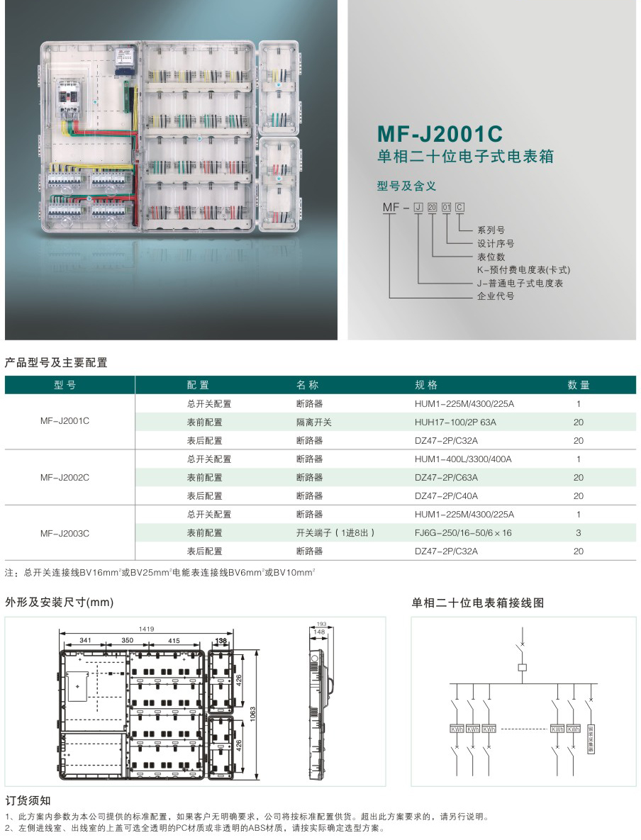 MF-J2001C 單相二十位電子式電表箱