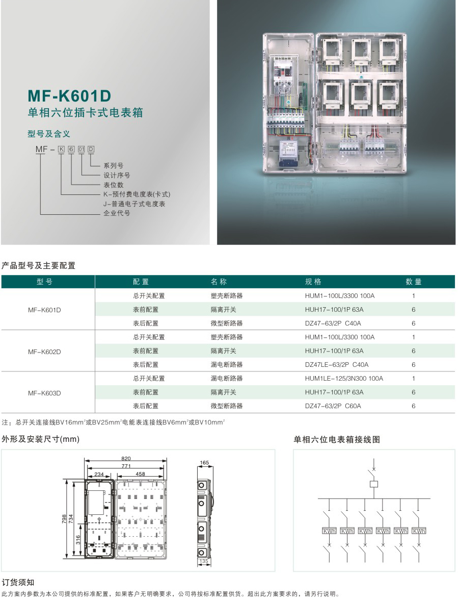 MF-K601D 單相六位插卡式電表箱